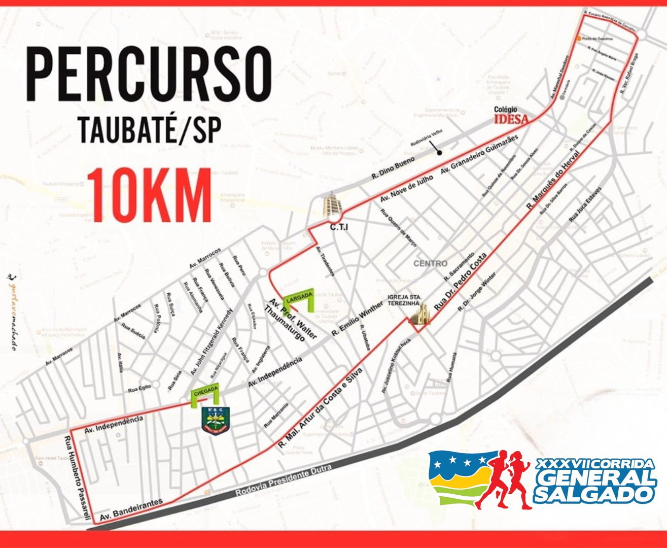 O EVENTO terá LARGADA na Avenida Walter Thaumaturgo (Centro de Eventos Taubateano - Avenida do Povo) nos horários previstos no presente regulamento e a CHEGADA em frente à sede do 5ºBPMI, conforme o percurso detalhado divulgado no site do EVENTO e no manual do ATLETA.